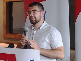 Photo : Le candidat Gabriel Bourret. (Naomie Briand, CFNJ-FM)