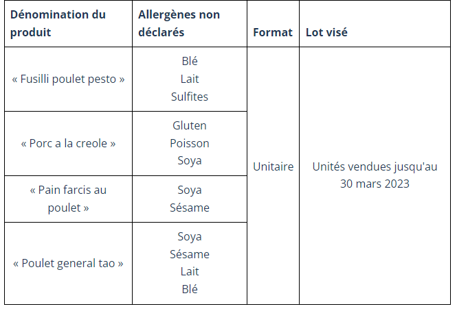 L’entreprise a omis d’indiquer sur les étiquettes un avis de ne pas consommer si vous êtes allergique au lait, au soya, au blé/gluten, aux sulfites, au sésame ou au poisson.